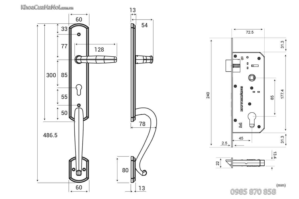 kích thước | ốp 300 x 60mm, 486.5mm (cả tay cầm) |